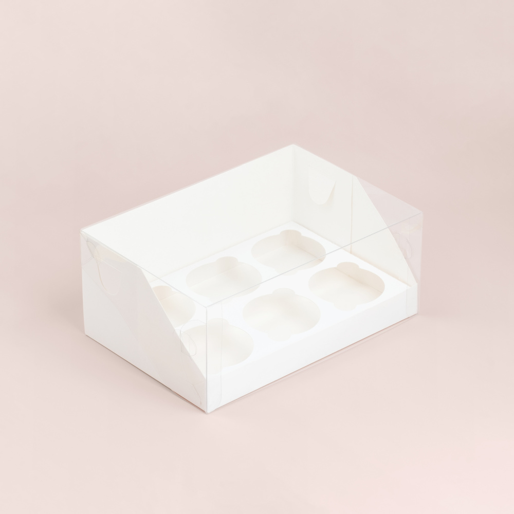 Коробка для 6 капкейков с пластиковой крышкой 235*160*100 мм