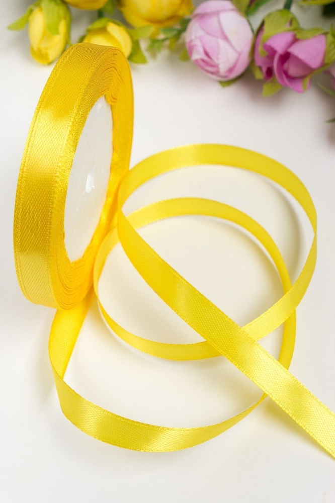 Лента атласная 1 см 25 ярдов жёлтая 058