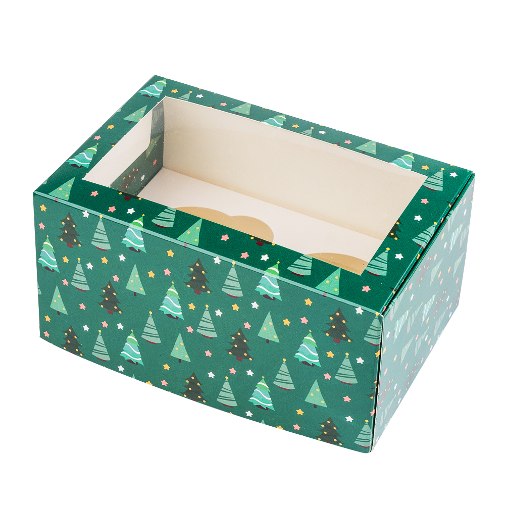 Коробка для 2 капкейков "Ёлки зелёные", с окном
