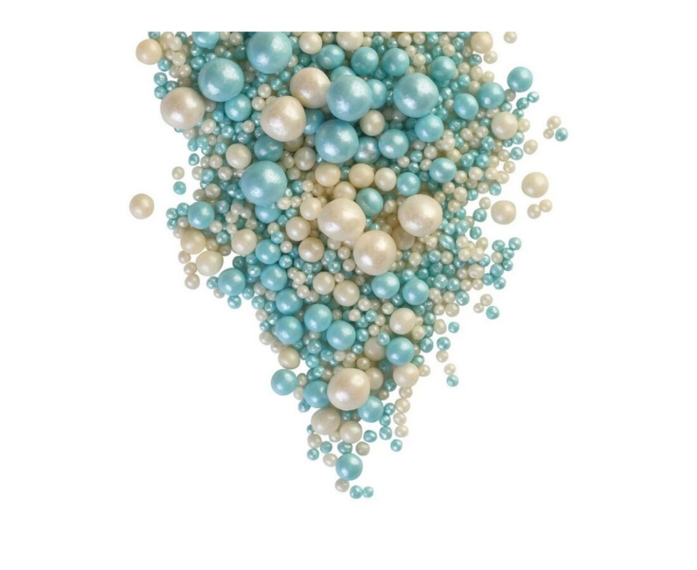 №195 Рисовое драже в глазури "Жемчуг Микс (бирюза, серебро) 100г